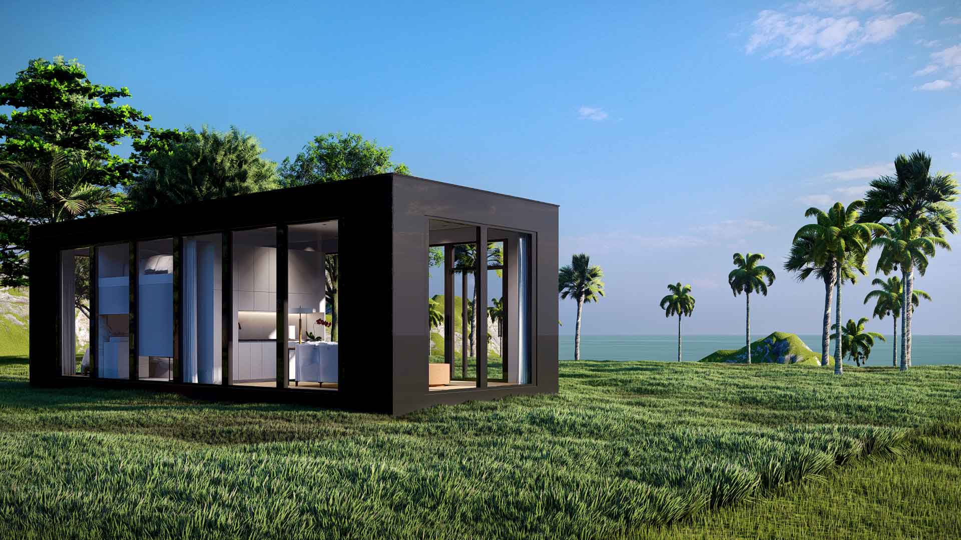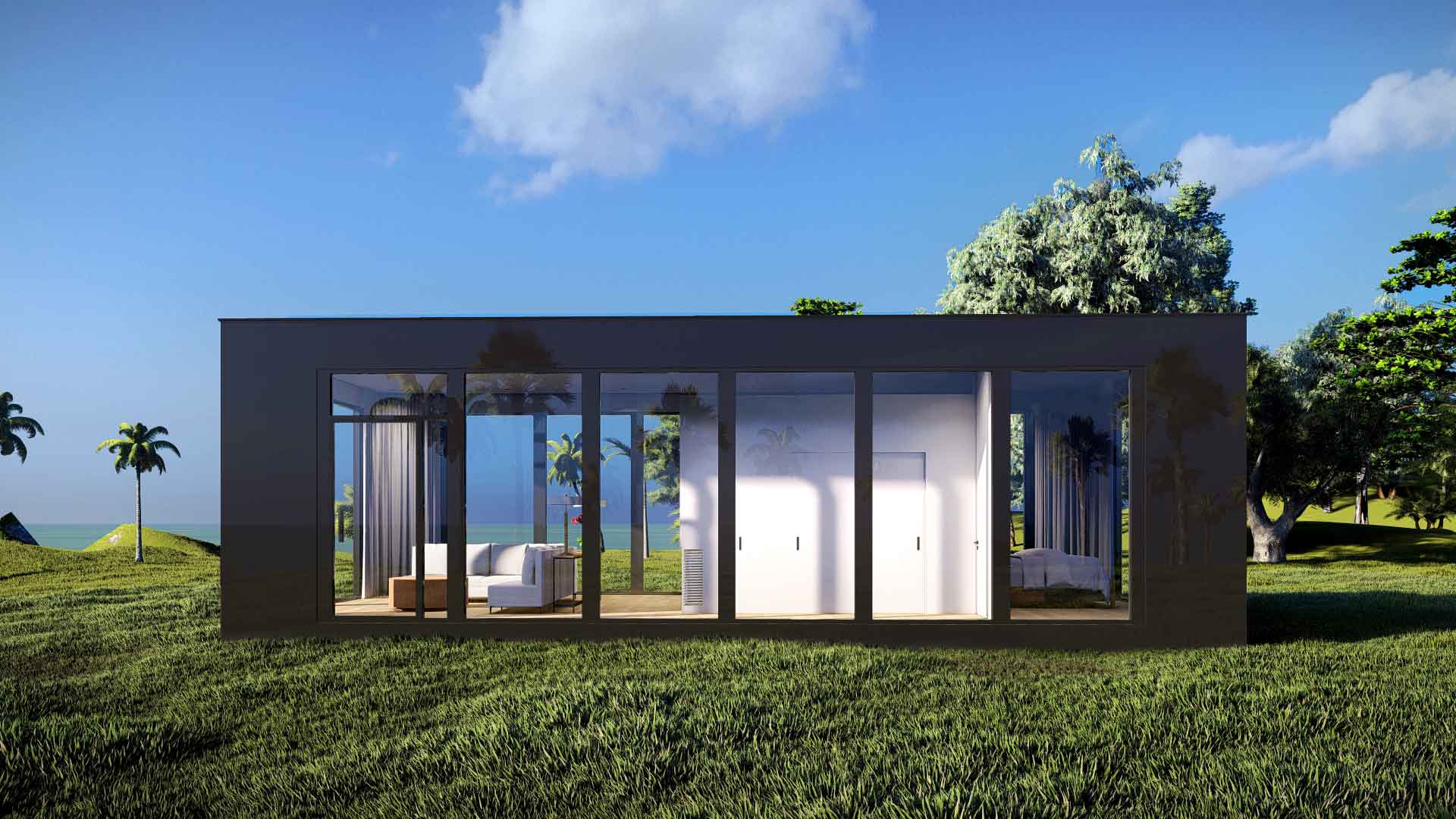 Our one-bedroom floor plan, measuring 16′ x 47′, offers a perfect balance of intimacy and space with four glass walls to connect with your surroundings. A fully finished home with electrical, plumbing, HVAC, a complete kitchen, and a bathroom. Enjoy the freedom to choose your interior and exterior finishes.